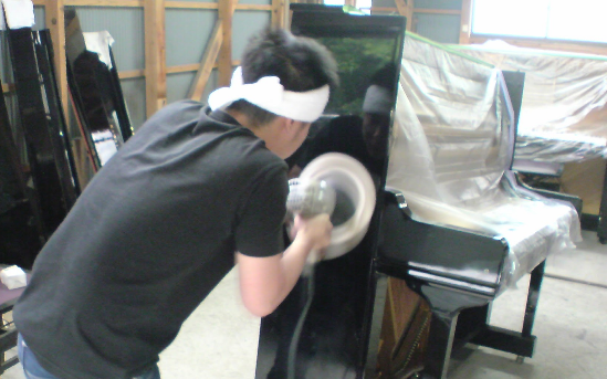 それがキッカケとなり、もう5000台は作業させてもらったでしょうか。その間に培ってきたピアノリユースのノウハウと塗装面を見極める目、専用機械、ピアノ用研磨剤、高級ワックスなどによって、大切なピアノをお守りすることができます。